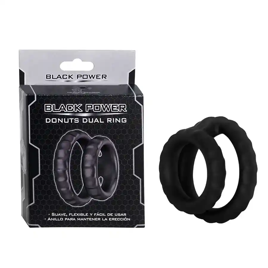 Donuts Dual Ring fue diseñado para intensificar el placer y ayudar a mantener la erección por más tiempo. Cuenta con dos anillos unidos de diferente diámetro, que ofrecen un ajuste cómodo y seguro, adaptándose naturalmente al cuerpo. Su diseño discreto, flexible y ergonómico proporciona una sensación de firmeza, ideal para quienes buscan mejorar su rendimiento y prolongar la experiencia. Características: • Material: Silicona • Grosor de los anillos: 1 cm • Diámetro anillo pequeño: 2 cm • Diámetro anillo grande: 3,5 cm • Peso: 14 g • Color: Negro • 100% sumergible al agua Limpieza: Antes de usar el juguete por primera vez, y después de cada uso, este debe ser limpiado para reducir el riesgo de infecciones, mantener la higiene adecuada y evitar el deterioro rápido del juguete. Recomendamos un producto especial para limpieza óptima como los Limpiadores para Juguetes Elixir. Recomendaciones: Para una experiencia más placentera, es ideal que el uso de este juguete sea con lubricantes a base de agua. Recomendamos el Gel Lubricante Íntimo Natural Elixir. No se deben usar lubricantes de silicona con juguetes de silicona. Podrían sufrir daños irreversibles.