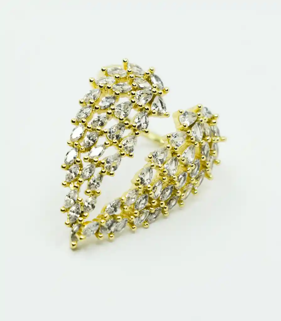 HERMOSO ANILLO DORADO EN FORMA DE ALAS CON CRISTALES, EL MATERIAL ES RODIO Y ES PERFECTO PARA COMPLETAR TU OUTFIT Y VERTE HERMOSA