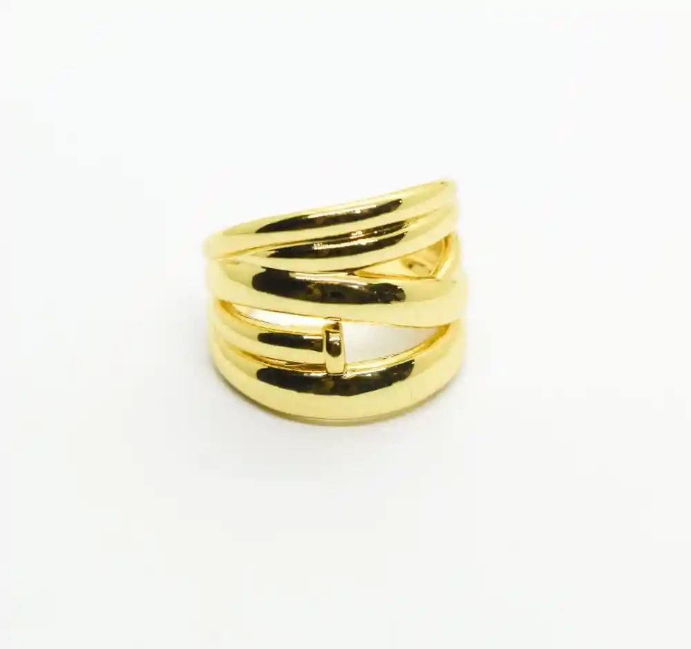 HERMOSO ANILLO GRUESO DORADO CON RAYAS, INDICADO PARA COMPLETAR TU OUTFIT, LUCIR HERMOSA Y ÚNICA