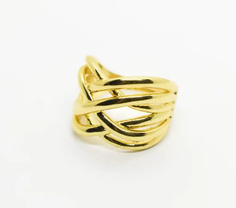 HERMOSO ANILLO GRUESO DORADO EN FORMA DE TRENZA, INDICADO PARA COMPLETAR TU OUTFIT, LUCIR HERMOSA Y ÚNICA