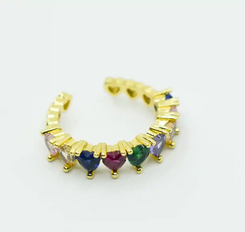 HERMOSO ANILLO DORADO CON CORAZONES DE COLORES, EL MATERIAL ES RODIO Y ES PERFECTO PARA COMPLETAR TU OUTFIT Y VERTE HERMOSA