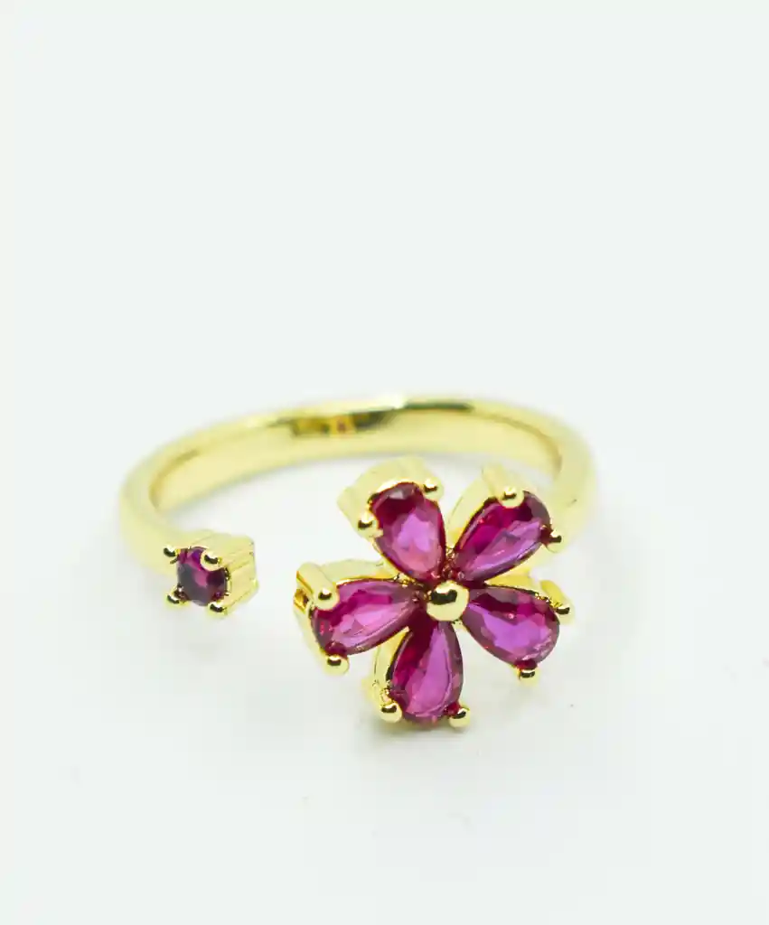 HERMOSO ANILLO DORADO EN FORMA DE FLOR ROSADA, EL MATERIAL ES RODIO Y ES PERFECTO PARA COMPLETAR TU OUTFIT Y VERTE HERMOSA