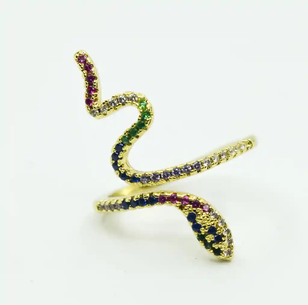 HERMOSO ANILLO DORADO EN FORMA DE SERPIENTE MAMBA DE MUCHOS COLORES, EL MATERIAL ES RODIO Y ES PERFECTO PARA COMPLETAR TU OUTFIT Y VERTE HERMOSA