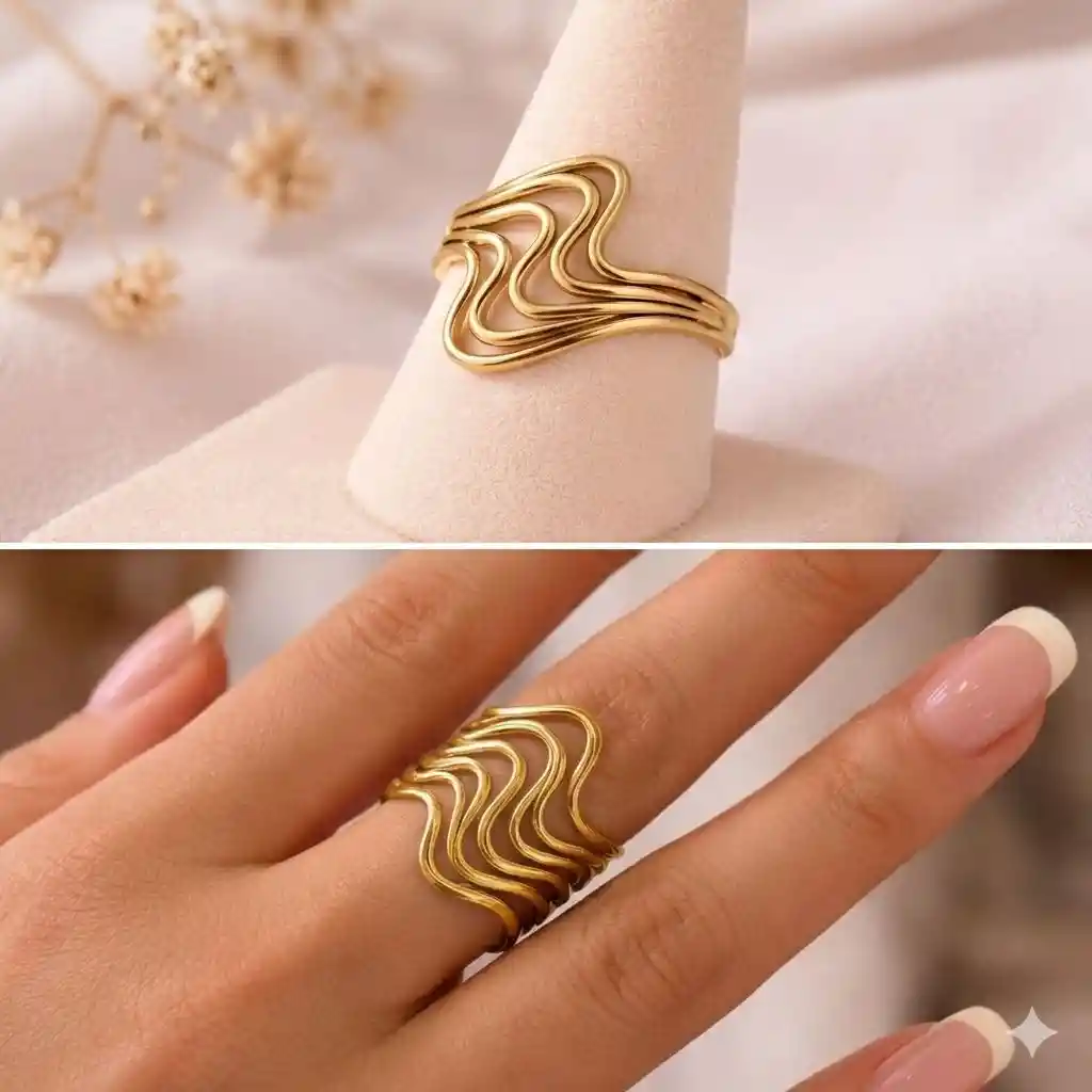 Anillo Dorado GRADUABLE ondas minimalista ajustable, acero inoxidablae