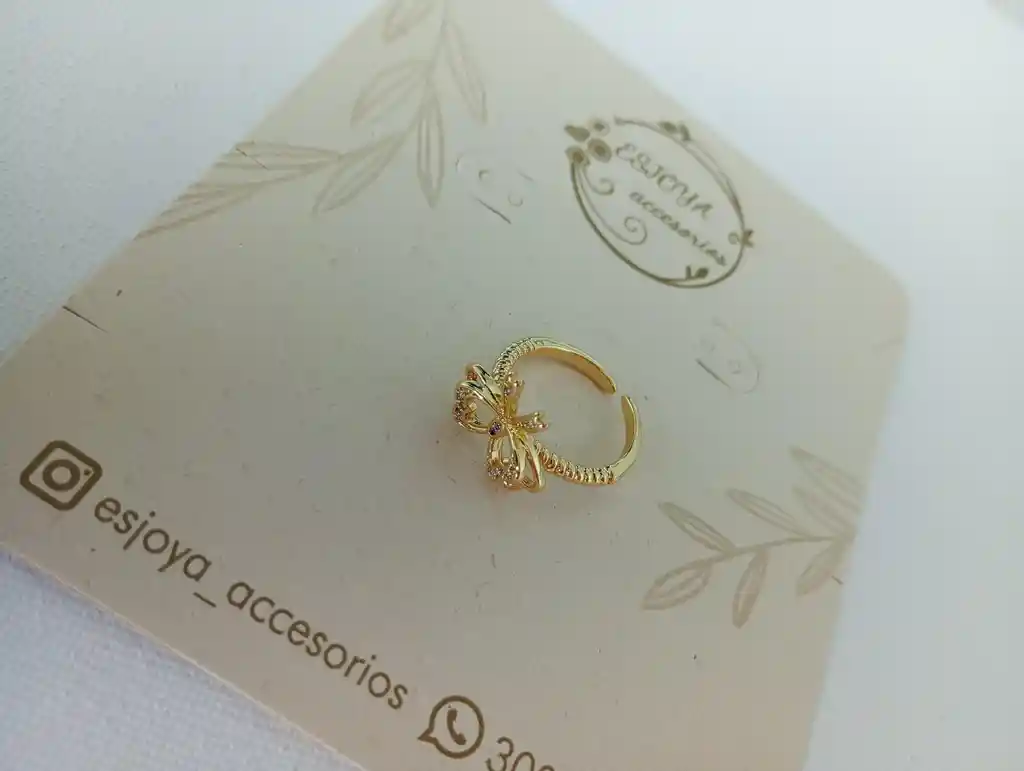 HERMOSO ANILLO DORADO PERLAS MOÑITO PARA DAMA AUTOAJUSTABLE A14 ULTIMA COLECCION