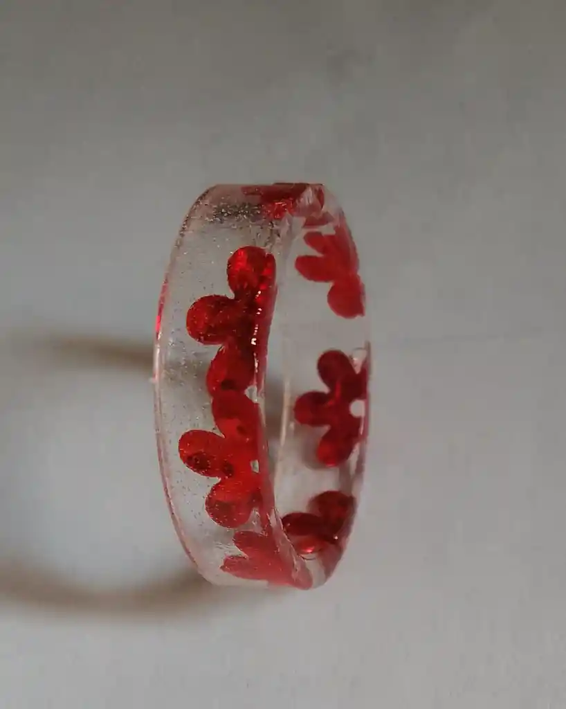 Lindo anillo hecho con resina talla 8.5 con detalle de flores rojas