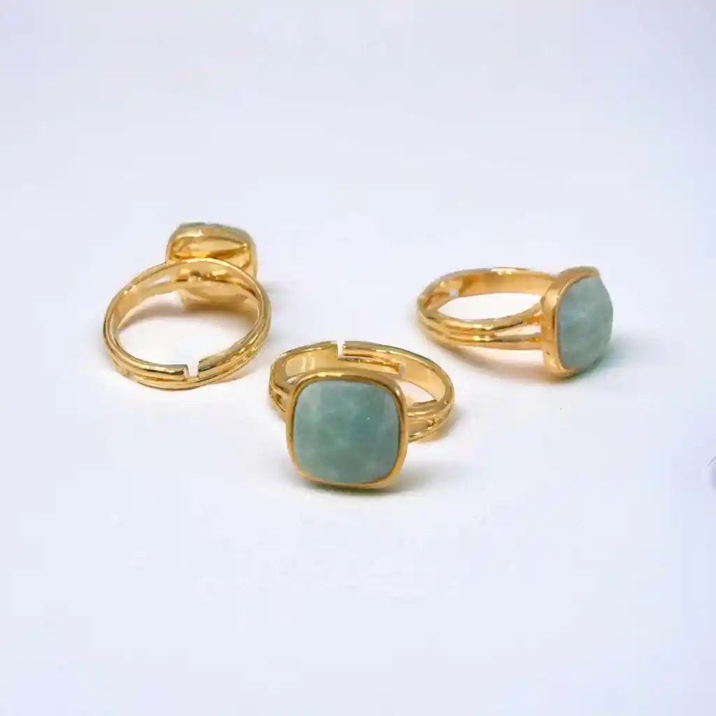 Anillo con baño dorado graduable. Cuarzo jade facetado.