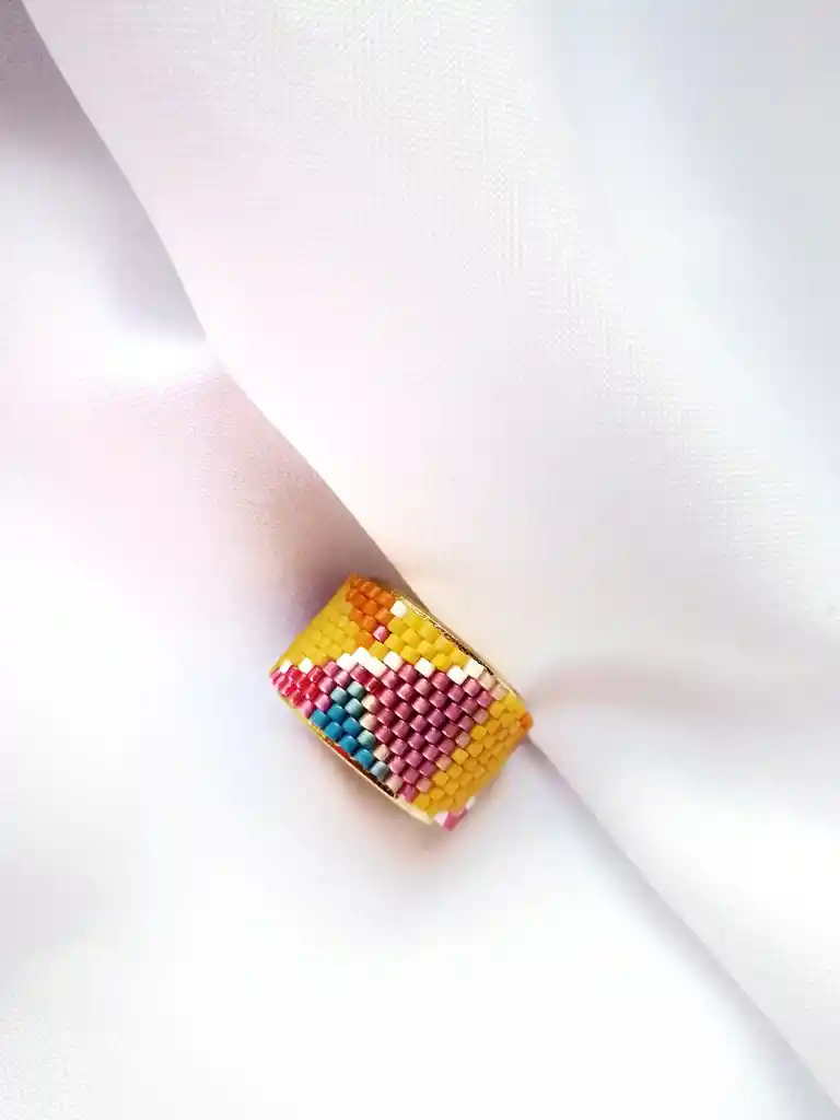 Base en bronce con baño en oro ajustable complementado con un hermoso tejido en MIYUKI