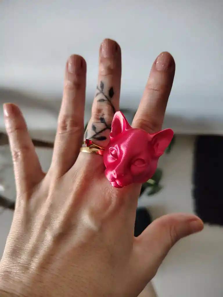 Color disponible: Rojo Carmín Tallas disponibles: 7.5 (Tallas universales de anillo) Tamaño aproximado: 6 × 4 × 3,5 cm Guía de tallas: Tallas y Medidas: Talla 3: 14.1 mm Talla 3.5: 14.5 mm Talla 4: 14.9 mm Talla 4.5: 15.3 mm Talla 5: 15.7 mm Talla 5.5: 16.1 mm Talla 6: 16.5 mm Talla 6.5: 16.9 mm Talla 7: 17.3 mm Talla 7.5: 17.7 mm Talla 8: 18.1 mm Talla 8.5: 18.5 mm Talla 9: 19 mm Talla 9.5: 19.4 mm Talla 10: 19.8 mm Talla 10.5: 20.2 mm Talla 11: 20.6 mm Talla 11.5: 21 mm Talla 12: 21.4 mm Talla 12.5: 21.8 mm Talla 13: 22.2 mm Talla 13.5: 22.6 mm Bienvenido a CocosMelón, nuestros productos son diseños modelados y creados por nosotros para ti. Cuando llevas un producto nuestro obtienes: -Producto manufacturado digitalmente -Diseños únicos y exclusivos -100%Colombiano -Alta durabilidad -Fácil limpieza -No se rompen -No manchan la piel -No tienen olor -Guía de tallas en la descripción. Descubre el Anillo Gato en 3D de CocosMelón, una pieza única que combina estilo moderno, hippie y maximalista. Este anillo, elaborado con bioplástico, es perfecto para quienes buscan una joya que refleje su personalidad y amor por los gatos. Su diseño tridimensional capta la esencia juguetona de estos adorables felinos, convirtiéndolo en un accesorio ideal para cualquier ocasión. El Anillo Gato no solo es una declaración de estilo, sino también una opción sostenible, gracias a su material ecológico. Su ligereza y comodidad lo hacen perfecto para el uso diario, permitiéndote lucirlo sin sacrificar la comodidad. Este anillo es una excelente elección para quienes desean destacar su individualidad y amor por los animales. Ideal para regalar a un amante de los gatos o para añadir un toque especial a tu colección de joyas, el Anillo Gato en 3D es una pieza que no pasará desapercibida. Su diseño versátil se adapta a diferentes estilos y puede ser combinado con otras joyas para crear un look único y personal. Atrévete a ser diferente y lleva contigo un símbolo de tu pasión por los felinos.