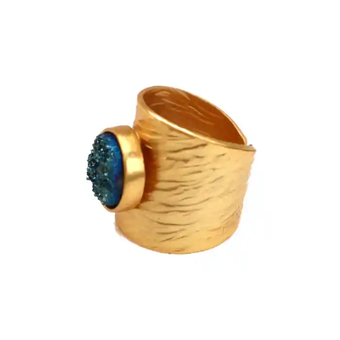 Anillo con drusa natural, elaborado en bronce con baño en oro libre de niquel