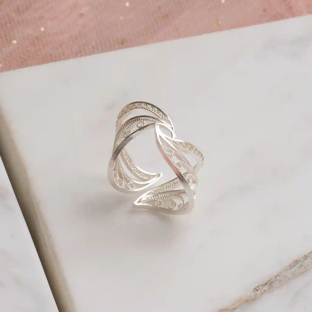 Anillo en filigrana momposina abierto elaborado en plata 9.80, Perfectos para combinar con tus looks del día a día. Parte de la colección ELYSIA, inspirada en las coronas de laurel y las trenzas que adornaban a las antiguas griegas. Joyas elaboradas en plata hechas a mano por Artesanos Colombianos. Hechos totalmente a mano artesanalmente. Joya en filigrana momposina. filigree jewelry. #IAMDAILA
