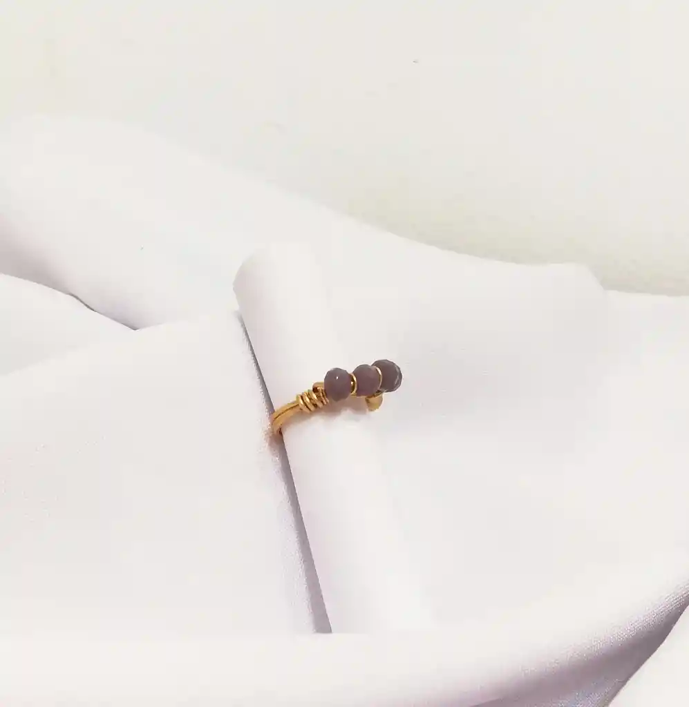 Elaborado en alambre de cobre con baño de oro y róndelas lilaTalla: 6