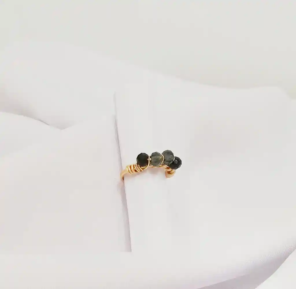 Elaborado en alambre de cobre con baño de oro y róndelas negrasTalla: 6