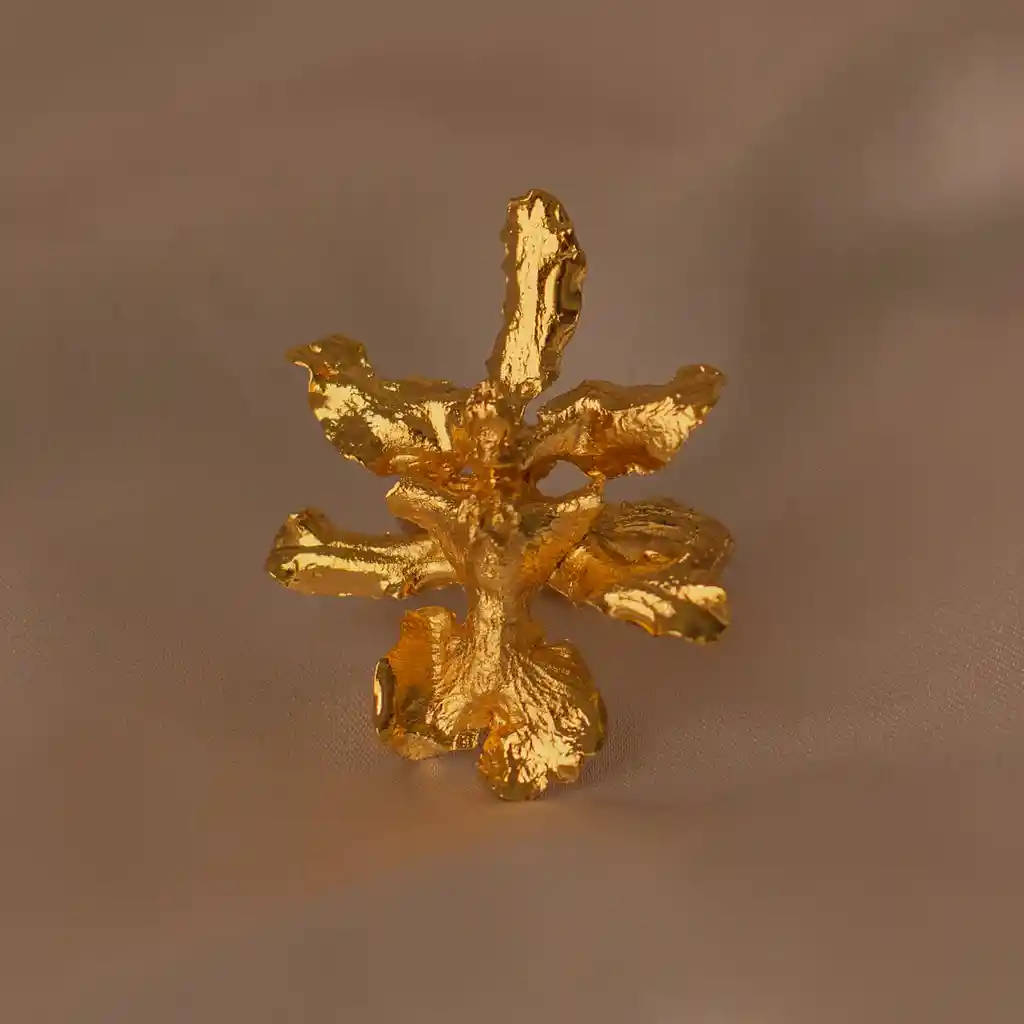 Nuestro Anillo Orquidea Epidendrum es una expresión de conexión con la naturaleza. Cada flor de Orquidea Epidendrum es cuidadosamente seleccionada e inmortalizada en bronce, luego realzada con un baño en oro de 24 kilates. Este anillo es ideal para adornar tus manos en eventos especiales o simplemente para agregar un detalle de lujo natural a tu estilo cotidiano. Nota: En cada anillo se celebra la singularidad, asegurándote una pieza que es solo tuya, tan única como las huellas de la naturaleza.. Material: Objeto natural inmortalizado en bronce y enchapado en oro de 24 kilates