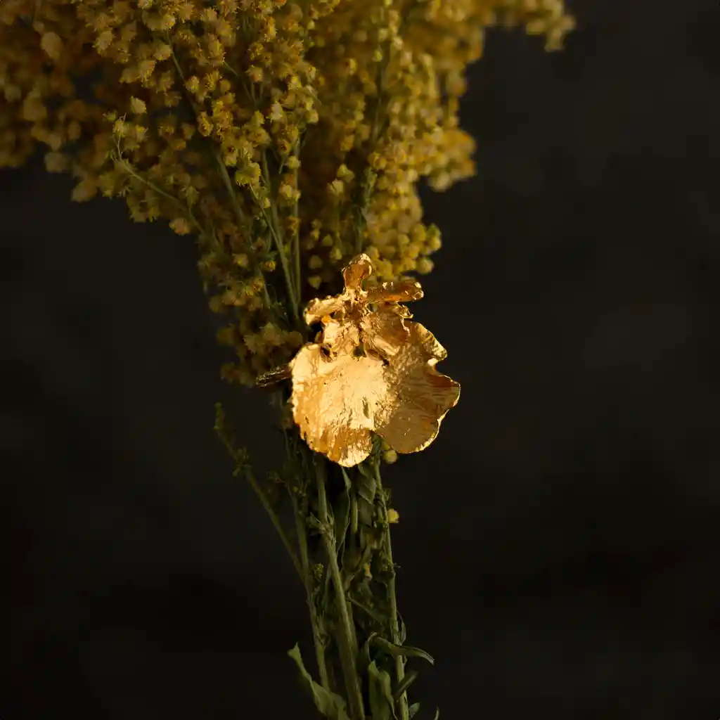 Anillo argolla con Flor de Orquidea Dama Danzante con Hoja de Pino natural inmortalizada en metal y chapado en oro de 24 kilates / Plata Sterling y protección en laca cataforética (evita daños por el tiempo y el ambiente). La imagen es de referencia y el producto final puede tener variaciones mas que todo en forma y tamaño, debido a que cada joya se realiza con una pieza original natural. No utilizamos moldes, joyas Naturales, Naturaleza Inmortalizada. #SomosNaturalezaViva