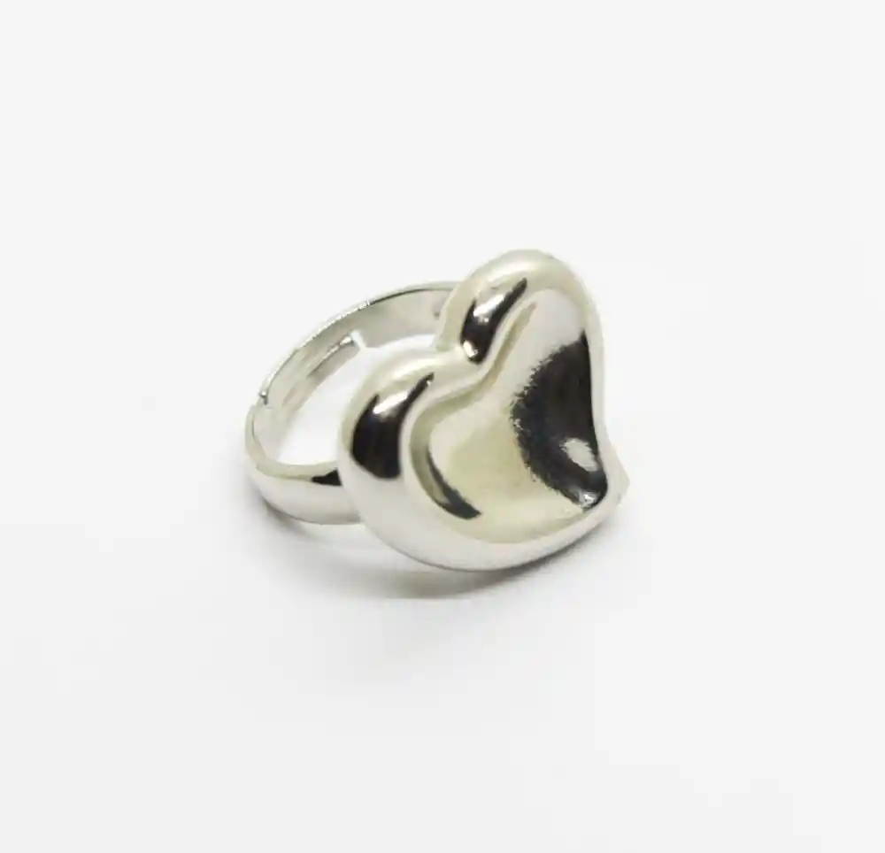 HERMOSO ANILLO GRUESO PLATEADO EN FORMA DE CORAZÓN PLANO , INDICADO PARA COMPLETAR TU OUTFIT, LUCIR HERMOSA Y ÚNICA