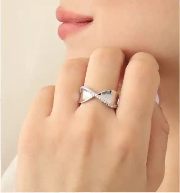 Anillo Plateado con diseño de Corbatín con Brillantes. Talla única. Ajustable. Accesorios, Bisutería, Joyería.