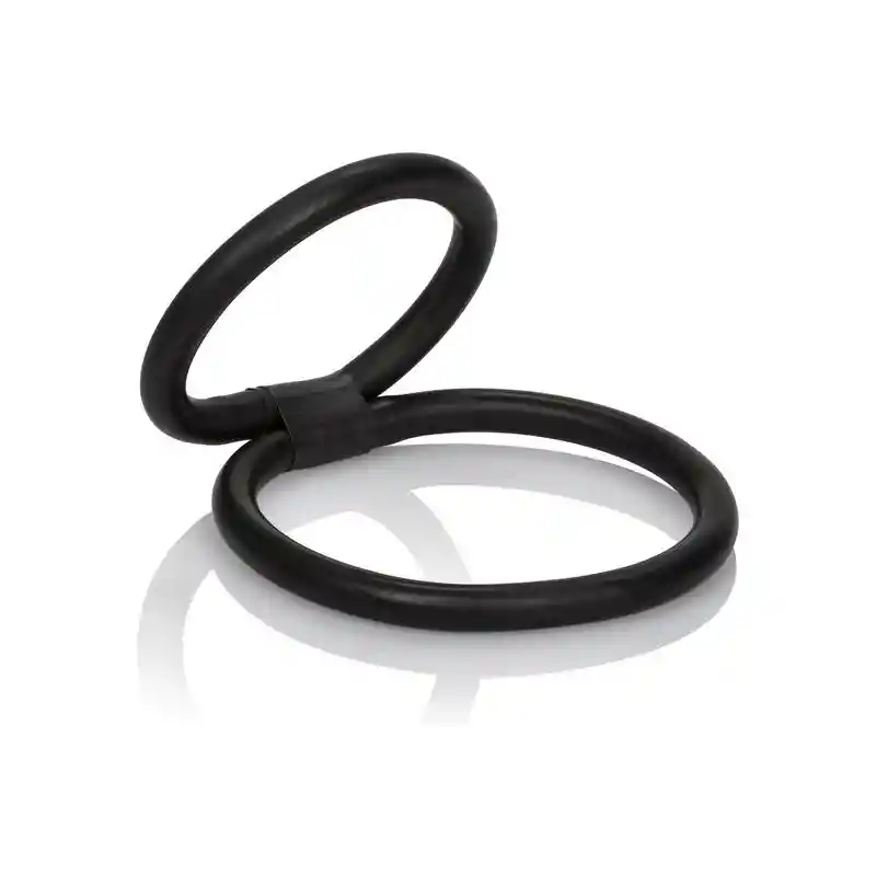 Anillo doble para el pene fabricado en látex de excelente calidad, permite retardar la eyaculación, mantener tu pene erecto mucho más tiempo y alargar el tiempo de las relaciones. Su correa ajustable consigue que se adapte a tu tamano. Diámetro de 7 cm.