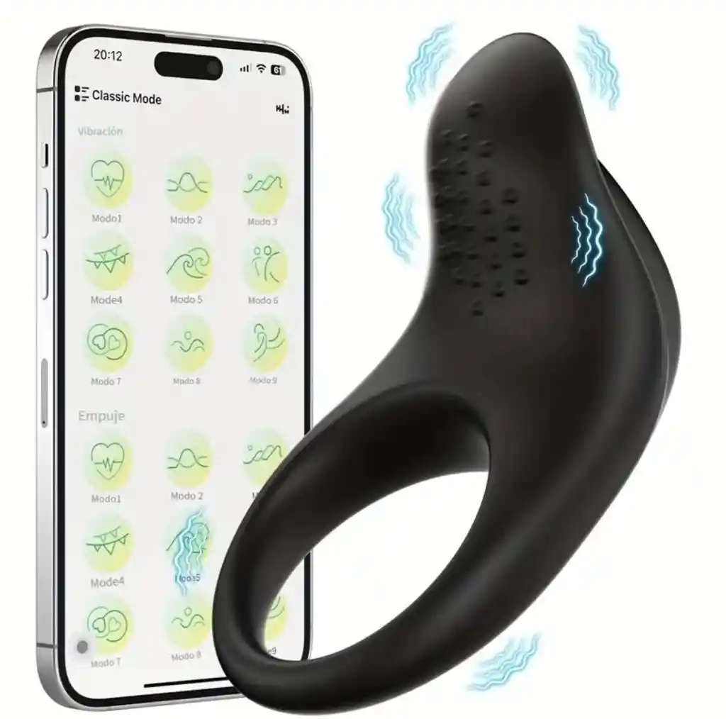 Anillo Vibrador Para Hombre Con App y Múltiples Frecuencias y Color Negro