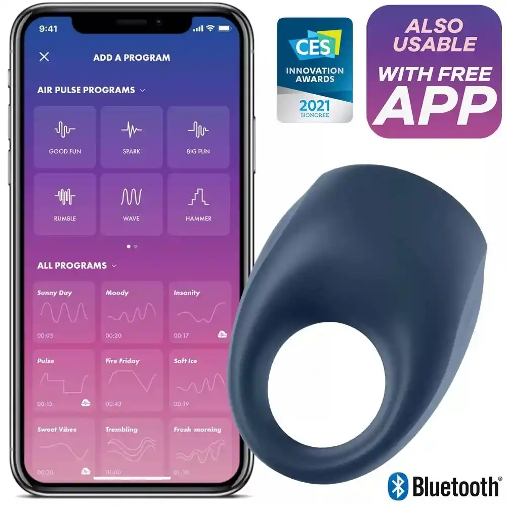 El anillo para el pene Strong One hecho de silicona respetuosa con el cuerpo te dará más resistencia y rigidez y retrasará tu eyaculación. Las vibraciones profundas también estimulan a ambos y se pueden controlar a través de la aplicación. Compatible con la aplicación gratuita Satisfyer – Disponible en iOS y Android Hecho de silicona de grado médico supersuave, agradable para el cuerpo, suave al tacto y extremadamente higiénica. Gracias a su acabado resistente al agua, este juguete se puede utilizar de forma segura en el agua y es fácil de limpiar. 10 programas de vibración