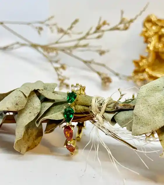 Anillo zircones de colores Cobre con baño de oro 18k Ajustable Recomendaciones y cuidados: Para preservar el color te recomendamos no mojarlas, evita la humedad. NO aplicar líquidos y químicos tóxicos(perfumes, splash, cremas, alcohol, etc) Almacena tus joyas por separado en los empaques de tela entregados con tus productos. POETRY no garantiza que el baño de oro y cualquier material de nuestros modelos dure para siempre. Las piezas bañadas y chapadas en oro, acero inoxidable, acero titanio, son por defecto, más frágiles y susceptibles de perder el color con el paso del tiempo. Para mayor información te invitamos a leer el link cuidado de tus Accesorios.