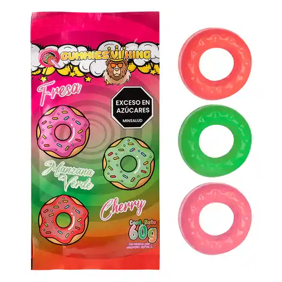Gomitas Vi King para una gran degustación. Hecho de caramelo con sabor afrutado a Fresa, Manzana Verde, Cherry. Estos anillos se deslizan fácilmente sobre un miembro y crean una experiencia comestible deliciosa. Características: Color: rojo, violeta, rosado. Forma de uso: Colocar los tres anillos en la zona deseada e iniciar ese momento especial en pareja Contraindicaciones: contiene azúcar, no apto para diabéticos.