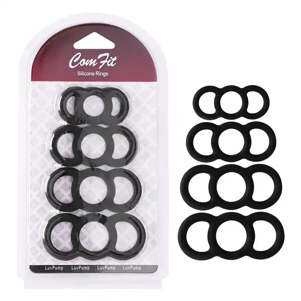Anillo para el pene diseñado para brindar erecciones fuertes, duraderas y grosor. Coloca el orificio más grande en la base del pene y los dos orificios laterales en los testículos. No exceder su uso por más de 20 minutos.
