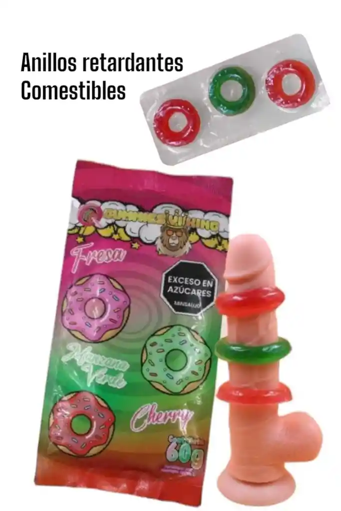 ANILLOS RETARDANTES COMESTIBLES DALE UNA SORPRESA A TU PAREJA ESTIMULA Y ALARGA LA RELACION SABORES : MANZANA VERDE Y FRESA