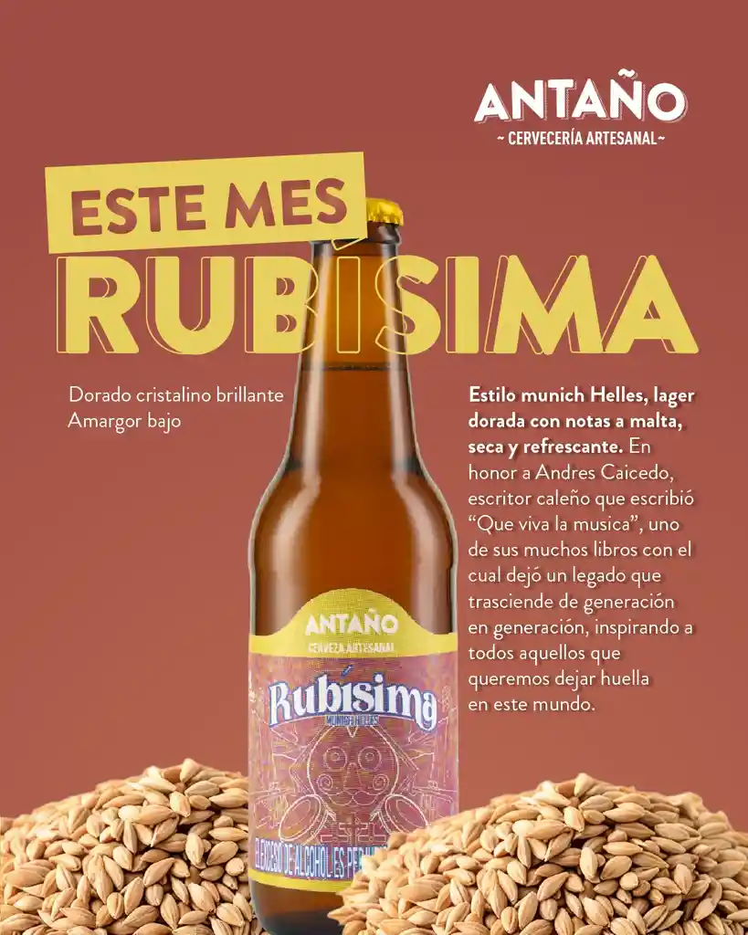 Antaño Cerveza Artesanal Rubisima Estilo Munich Helles Botella 330ml 1und