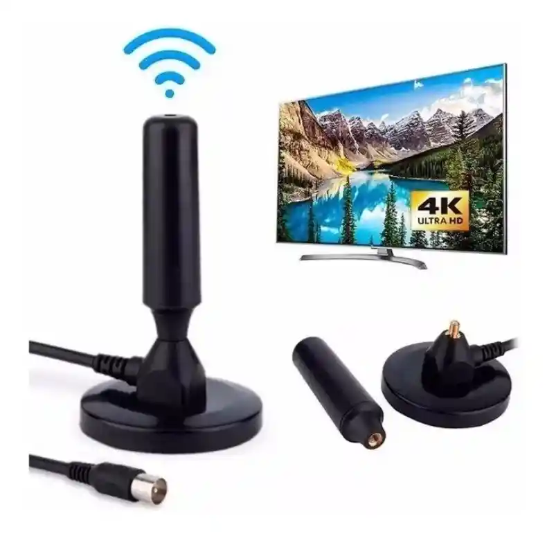 Antena Tdt Amplicadora De Señal Television Digital 30dbi - Negro Antena especial para la recepción de televisión y radio digital terrestre. Diseñada para una recepción omnidireccional (360º) de señales TDT. Antena magnética es particularmente apta para equipos de comunicación como receptores DVB-T. Cable coaxial con conector macho TV de 9,5mm para una recepción libre de interferencias. Posee un sistema de alto rendimiento que proporciona una calidad excelente de señal, minimizando las interferencias como los fantasmas, la lluvia y los chiños. Sustituye En Muchos casos La Necesidad De Antena Externa. Sus Líneas Modernas Y El Fino Acabado Garantan Perfecta Armonía Con El Ambiente. CARACTERÍSTICAS DESTACADAS: *Antena externa que te permite ver tus canales nacionales favoritos en HD. *Ganancia: 30 dBi. *Diseño compacto. *Base imantada para adherir a superficies metálicas. *Cable de 2 metros con conector coaxial. *Fácil instalación.
