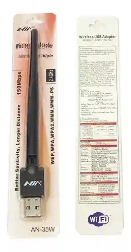 Adaptador Wifi Para TDT . La instalación fácil de este dispositivo le permitirá conectarse a la red en sólo minutos. Características • Condición del producto: Nuevo • Modelo: AN-35w • Velocidad inalámbrica 150Mbps • Frecuencia de hasta 2.4GHz • Conexión: Usb 2.0 • compatible con TDT