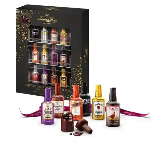 Contiene 24 Unidades. Botellas de Chocolate en Miniatura Con un Relleno Líquido Que Contiene Auténticos Licores de 12 Marcas Diferentes. Siempre Puedes Encontrar un Favorito Tanto si se Trata de Premiar Tus Propias Papilas Gustativas Como a Alguien Que lo Merece.. Prohíbase el expendio de bebidas embriagantes a menores de edad. Ley 124 1994.. El exceso de alcohol es perjudicial para la salud. Ley 30 de 1986.