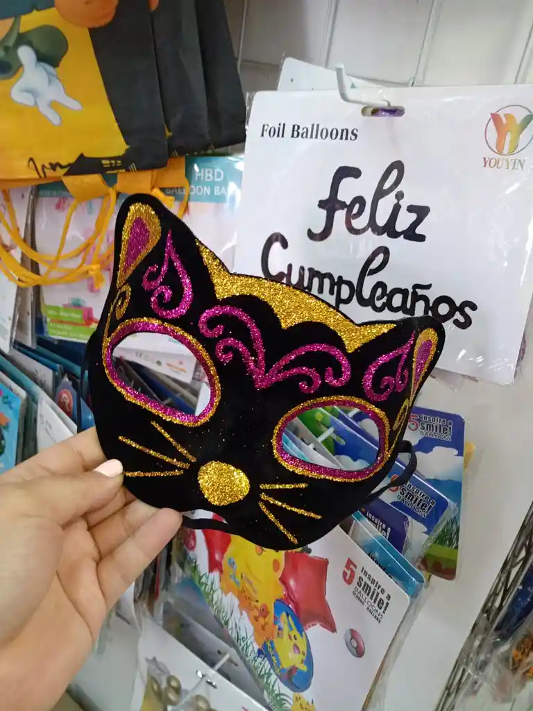 ¿Buscas un chulísimo disfraz para Halloween, Carnaval o cualquier otra fiesta de disfraces? Te ofrecemos el elegante y sofisticado antifaz de gato con escarcha que reacciona a la luz ultravioleta. Te dará el toque de fantasía que deseas. El antifaz gato con purpurina UV está hecho de plástico de calidad y se adaptará fácilmente a la forma de tu cara, aportando una gran comodidad. Está disponible en talla única. En la parte trasera cuenta con una goma para la perfecta sujeción. En la parte delantera está recubierto de diferentes dibujos y figuras de purpurina que reaccionarán también a la luz ultravioleta. Por lo tanto, su brillo y luminosidad será doble. Esta máscara no necesita de pilas ni baterías para funcionar. Por el día brillará gracias al reflejo de la luz en la purpurina. Además, si dispones de una fuente de luz ultravioleta en tu fiesta, conseguirás una reacción que intensificará los colores neón del antifaz. Color: según disponibilidad en tienda Tamaño: 16.5 cm x 14 cm (aprox.) El paquete incluye: 1 unidad