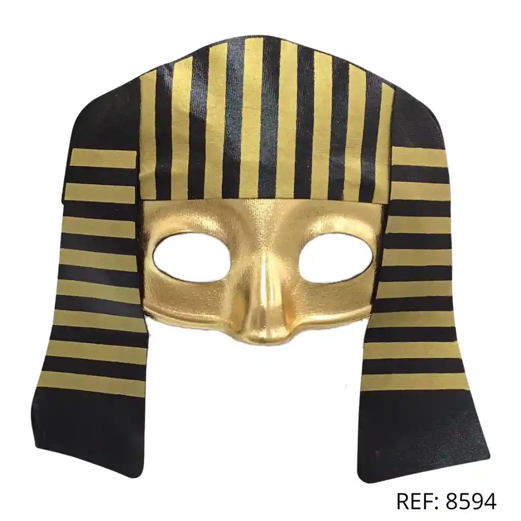 Máscara faraón dorada y negra, ligera y llamativa, ideal para disfraces egipcios, eventos y presentaciones teatrales.