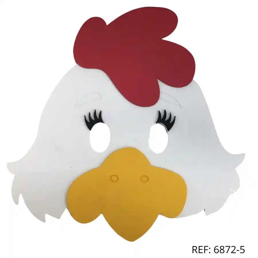 Antifaz de gallina en foamy. Perfecto para juegos de granja y celebraciones infantiles.