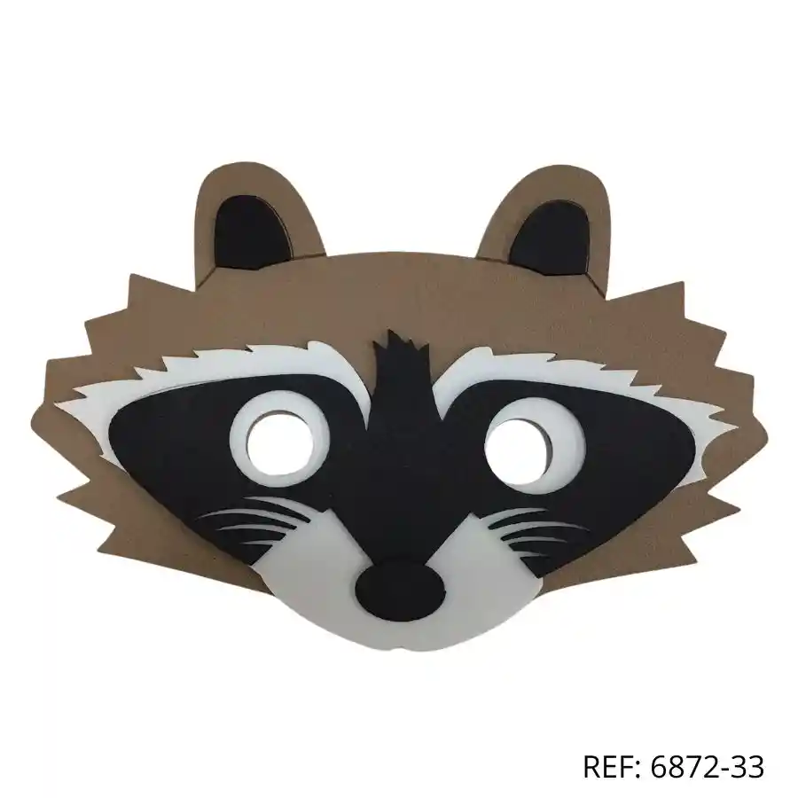 Antifaz de mapache en foamy. Perfecto para juegos, presentaciones o actividades escolares.