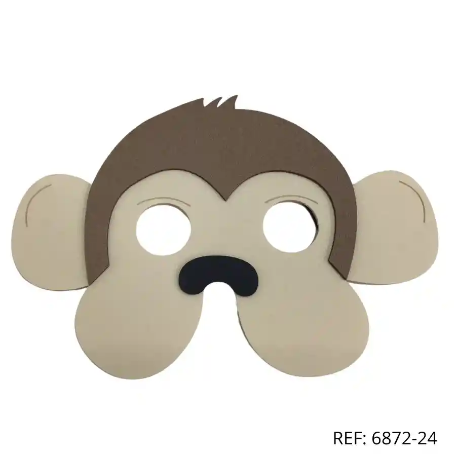 Antifaz de mono en foamy. Ideal para juegos, disfraces y obras escolares.