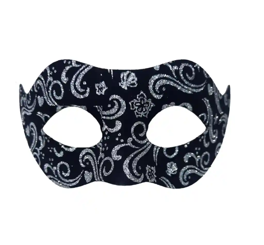 Antifaz Negro Terciopelo Escarchado Plateado Hora Loca Halloween Carnaval