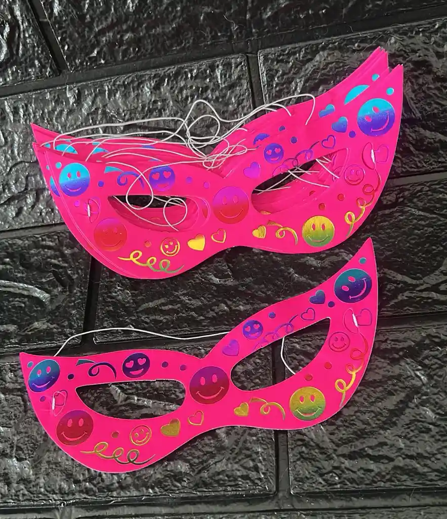 ANTIFAZ NEON FUCSIA CON FIGURAS X12 UNIDADES HORA LOCA COD.3751