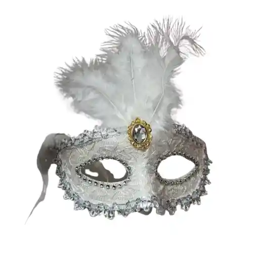 ANTIFAZ DE PLUMA CON ENCAJE COLOR BLANCO