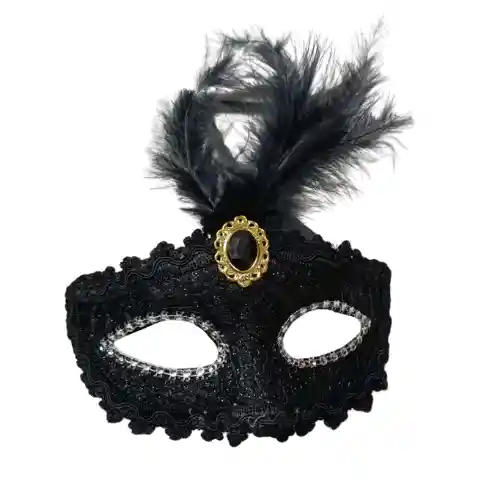 ANTIFAZ DE PLUMA CON ENCAJE COLOR NEGRO