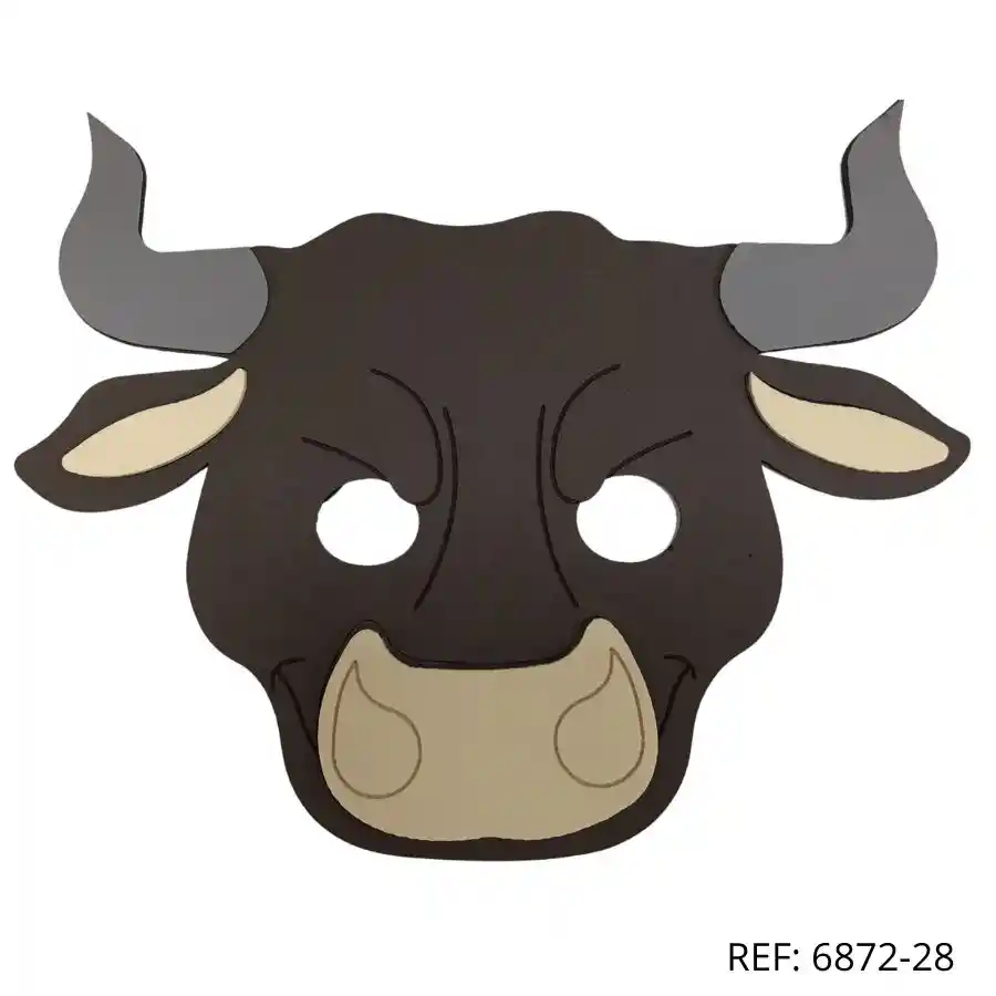 Antifaz de toro en foamy. Ideal para juegos de granja o celebraciones tradicionales.