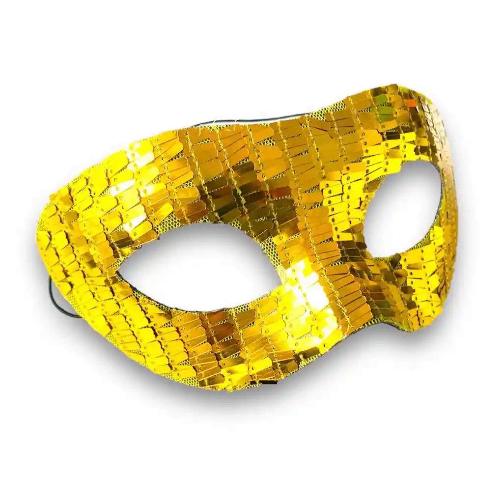 Espectacular antifaz de lentejuelas para adultos ideal para disfraces y fiestas Halloween. Color: Dorado Tenemos más accesorios para completar tus disfraces.