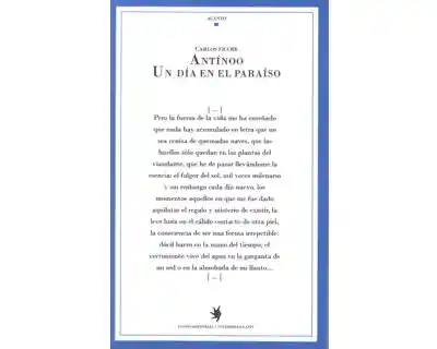 Este Breve y Excelente Manojo de Poemas Toma Título Del Primero de Ellos, Dividido en Doce Capítulos e Inspirado en Los Amores Del Emperador Adriano Con Aquel Joven Bitinio, Que lo Acompañó en Sus Viajes y Campañas Por el Mundo Antiguo. La Pieza Parece Cincelada Con la Perfección Que se Conoce en Ese Monumento Que, en el Museo Vaticano, Perdura en Memoria Del Hermoso Efebo. Pereció, Como lo Evoca Marguerite Yourcenar en Sus Memorias de Adriano, Ahogado en el Río Nilo, Circunstancia Que Hundió en la Congoja al Emperador, Quien Preservó su Muerto Corazón y Dispuso le Fueran Consagrados, en Egipto, la Ciudad de Antinópolis, y en Distintos Lugares Del Imperio, Altares y Estatuas en su Memoria. El Poema Reproduce el Dolor de Adriano, Pero al Tiempo Está Lleno de Una Sensualidad Trágica, de Tono Muy Clásico, Que Bota de la Sabiduría Con Que, en él, ha Sido Elegida Cada Palabra. ISBN: 9789588281841