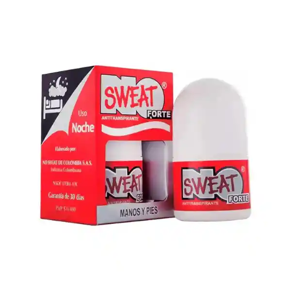 No Sweat es un antitranspirante 100% efectivo que te libera de la transpiración desde la primera aplicación. Es crucial seguir los modos de uso para asegurar su efectividad. Identifica el área del cuerpo donde más sudes para elegir la presentación adecuada. No Sweat Clásico Negro está diseñado para controlar el sudor excesivo en: - Axilas - Rostro - Espalda - Cuello - Nuca - Cabeza No Sweat Forte Rojo está formulado para el sudor excesivo en: - Manos - Pies Apto para cualquier persona, independientemente del género. La aplicación es uniforme y efectiva en todos los casos, sin contraindicaciones.