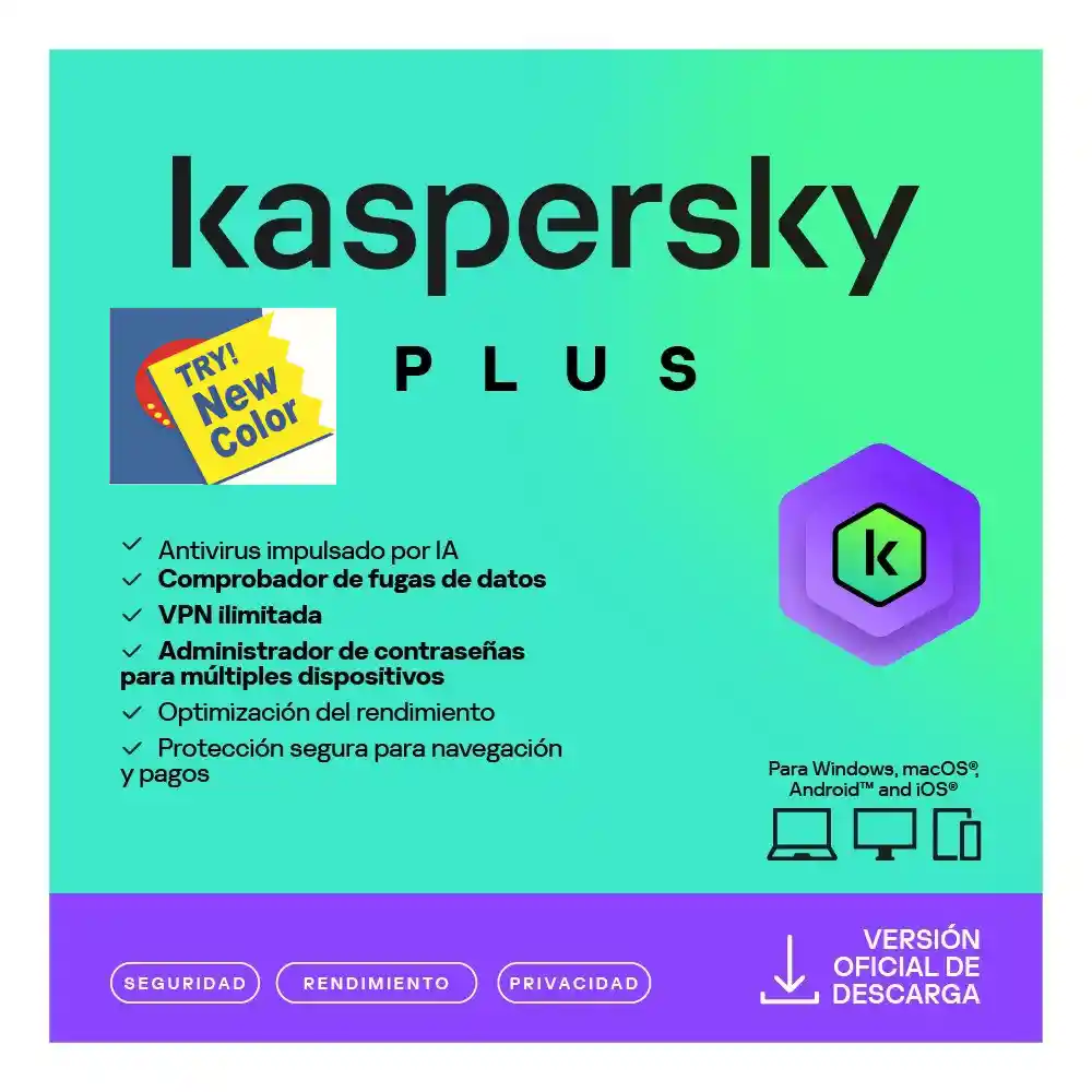 Antivirus kaspersky PLUS / 3 dispositivos / 2 años / base