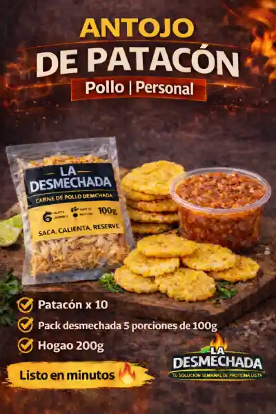 Disfruta nuestro irresistible Combo Antojo de Patacón 🟡🔥 Crujientes patacones acompañados de jugosa carne desmechada de pollo, preparados con ingredientes seleccionados y listos en minutos. Perfecto para compartir o darte un gusto sin complicaciones 😋 Incluye: ✔ Carne desmechada de pollo ✔ Patacones listos para preparar ✔ Hogao casero tradicional 💡 Solo calienta, arma y disfruta en casa.