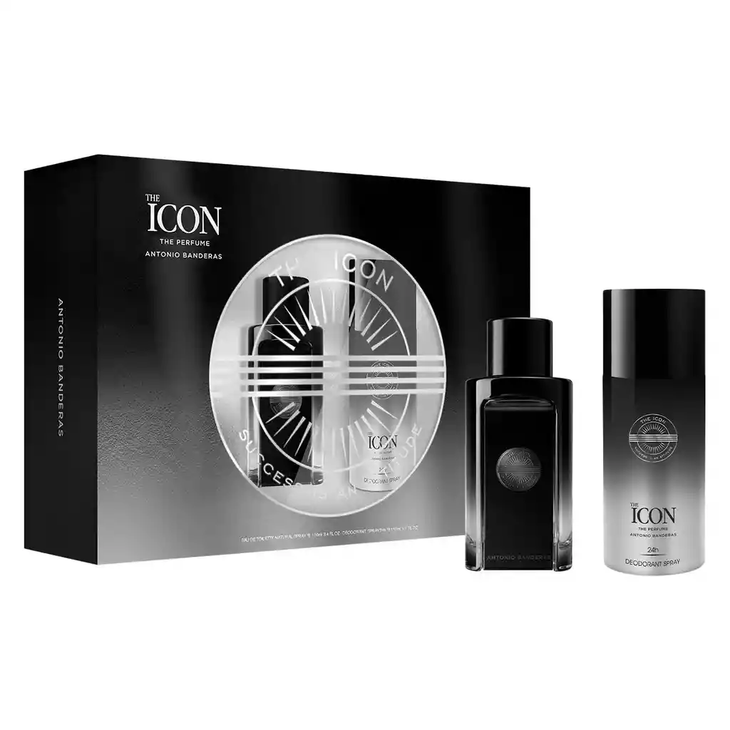 Set Antonio Banderas Contiene 2 Unidades. Perfume Hombre The Icon 100 mL + Desodorante 1 Und.