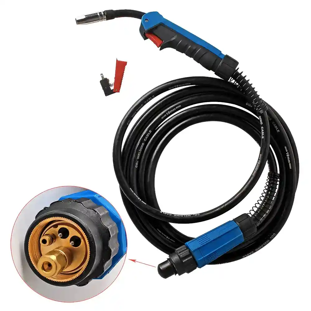 La antorcha MIG 15AK Tecraft Industry es refrigerada por aire, combinan ergonomía y sensibilidad con todas las variaciones de módulos comunes (para funciones de conmutación y control) garantizan un agarre seguro y una manipulación óptima, utilizan el recién desarrollado sistema bajo peso, que da un perfecto equilibrio a las antorchas para una soldadura sin esfuerzo en todas las posiciones. Todas las antorchas Tecraft Industry están cuidadosamente diseñadas para proporcionar un funcionamiento cómodo y preciso. CARCATERISTICAS TÉCNICAS: Es compatible con todo tipo de antorchas de soldadura MIG de la serie MB 15AK/24KD/36KD. Enfriamiento óptimo de la antorcha, que prolonga la vida de la antorcha. El ciclo nominal es: 60%, 180Ah en CO2 y 150Ah en gas mixto. La capacidad del cable de alimentación es de 0,6mm-1,2mm. La punta de contacto predeterminada es de 0,8mm(0.030”) – 0,9mm(0.035”) - 1,0mm(0.040”) -1,2mm(0.045”).