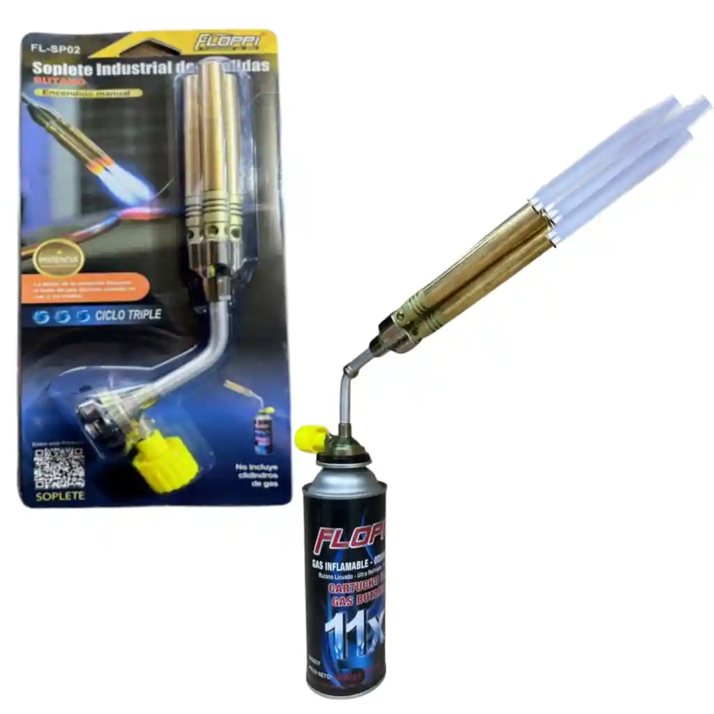 Descripción Antorcha Soplete Floppi con Chorro Triple / FL-SP02 Descubre la Antorcha de Soldadura de Gas Butano de Alta Temperatura con chorro triple, un producto compacto y portátil que se convierte en tu mejor aliado tanto en la cocina como en el taller. Características principales: Diseño ligero y corto: Su cuerpo ergonómico permite una sujeción conveniente, haciéndola fácil de llevar y almacenar. Materiales de alta calidad: Fabricada con materiales antioxidantes y resistentes al calor, garantizando una vida útil prolongada. Resistente a las inclemencias: Su diseño permite que sea impermeable, resistente al viento y a la humedad, ideal para usar en múltiples entornos, ya sea en interiores o exteriores. Versatilidad de uso: Perfecta para la cocina, procesamiento de joyas y gafas, así como para el mantenimiento de equipos. •Control total: Ajusta fácilmente el tamaño de la llama y la temperatura según tus necesidades. Contenido del paquete: •1 Antorcha soplete con chorro triple. •1 Recarga Gas Butano Floppy 450ml ¡No te quedes sin esta herramienta esencial para tus proyectos! La Antorcha Soplete con Chorro Triple es la opción ideal para quienes buscan rendimiento y comodidad en un solo producto.